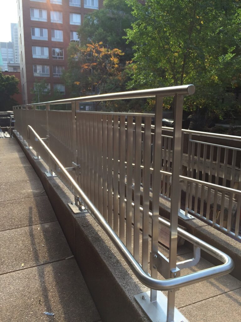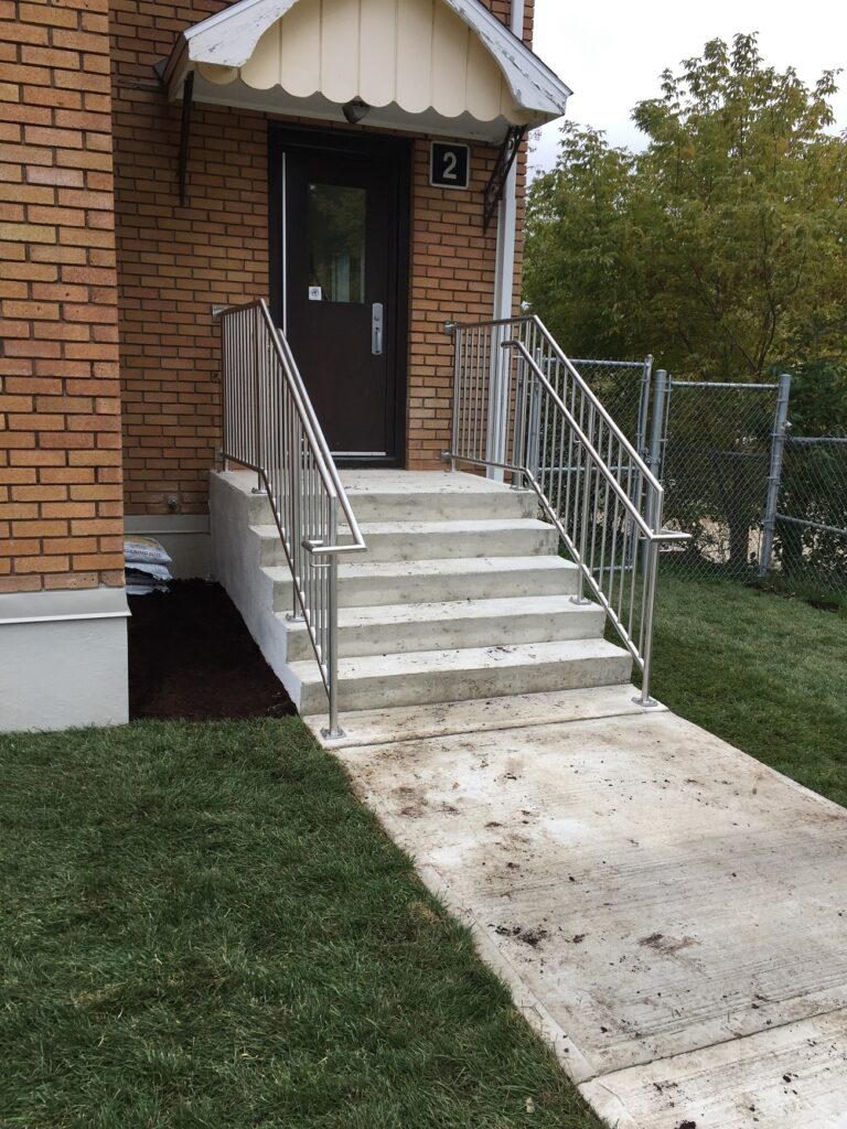 La fabrication des garde-corps en acier inox comporte plusieurs étapes. D’abord, il y a le cintrage, processus au cours duquel on plie les tuyaux de façon uniforme et parfaitement ronde. Ensuite, il faut les faire encocher, c’est-à-dire faire en sorte qu’un bout de tuyau s’emboîte de manière perpendiculaire dans un autre. En effet, les garde-corps sont assemblés de façon uniforme sur une table de soudeur pour, par la suite, les souder avant de les faire nettoyer à l’acide et passiver à la toute fin, le cas échéant. Il y a également l’étape du polissage qui se fait à l’aide d’un outil à air spécialisé. Cette étape est primordiale afin que l’ensemble des pièces soit sablé pour obtenir un fini uniforme, brillant et scintillant, exactement comme le matériau de base reçu.L’installation des garde-corps en acier inox