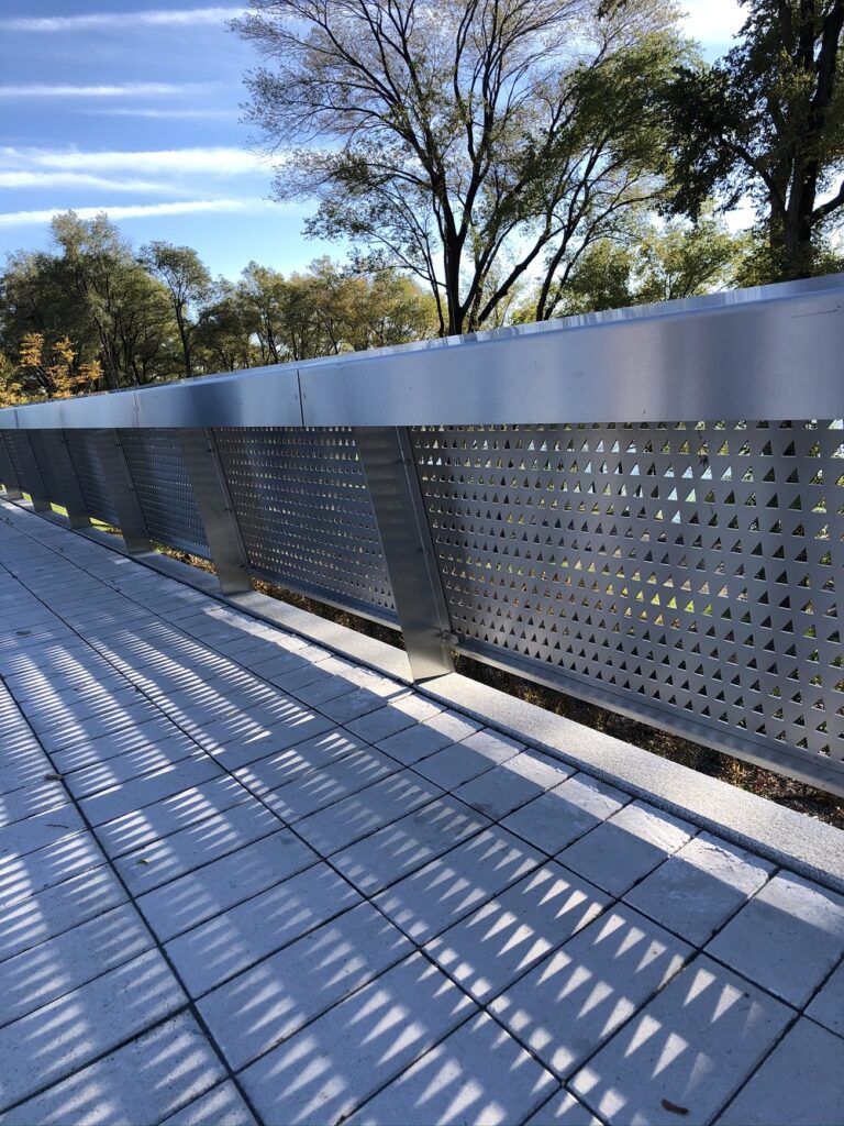 L’expérience de Syri dans le monde des garde-corps n’a toutefois pas débuté dans le domaine de la construction. Que ce soit pour empêcher les employés de tomber sur des lignes de production des abattoirs ou pour être installés sur une mezzanine ou passerelle fabriquée ou non par Syri, l’entreprise fabrique depuis 1957 des garde-corps en acier inox pour différents clients du domaine agroalimentaire. On remarque cependant que les garde-corps dans ce domaine ont une hauteur variable selon leur utilisation et qu’ils sont souvent conçus et fabriqués avec du tube de forme carrée ou rectangulaire au lieu d’être rond. La différence dans la forme s’explique surtout par le fait qu’il est plus facile de fixer des accessoires, des éléments électriques ou de sécurité sur des surfaces planes que sur un tuyau rond. Ensuite, le fini est aussi souvent différent puisque son usage n’est pas esthétique et que le client préfère souvent payer un prix moindre pour un matériau plus mat que brillant. Enfin, les garde-corps en acier inox sont régulièrement équipés de cous-de-pied pour éviter la chute d’objets et d’outils aux endroits où ils sont installés.